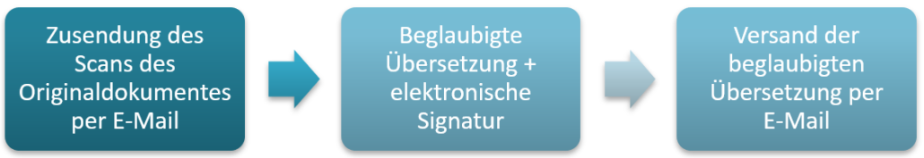 - schnellerer Erhalt der beglaubigten Übersetzung (kein Postweg etc.)